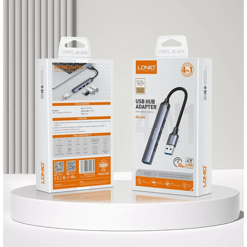LDNIO USB 4-in-1 Hub Adapter – High Speed USB to 4 USB